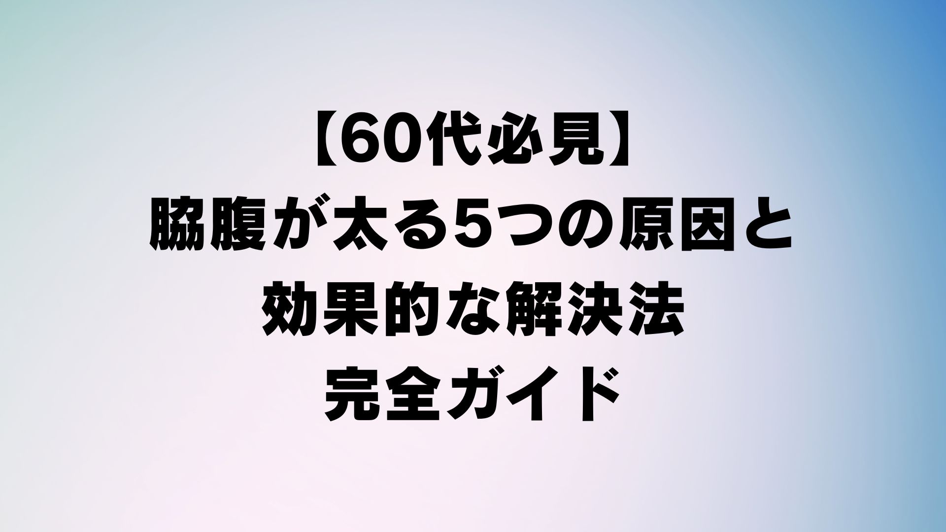 60代になると、多くの方が「昔と同じ生活をしているのに脇腹だけ太ってきた」という悩みを抱えています。実は、この現象には年齢を重ねることで起こる体の変化が深く関係しているのです。
