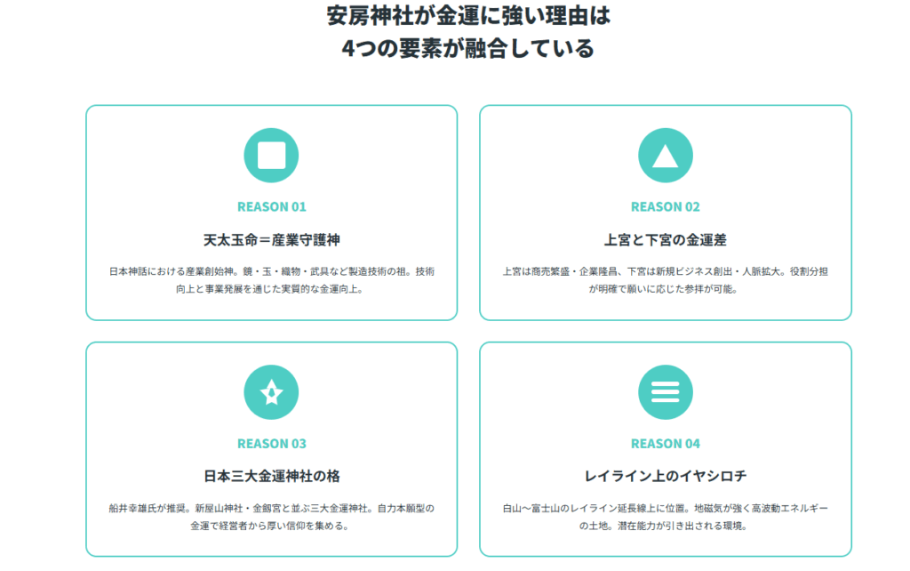 安房神社の金運効果が注目される理由は、以下の4つの要素に集約されます。