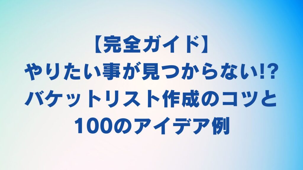 やりたいことが思いつかない人必見!バケットリスト作成のコツや例を紹介