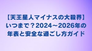 土星人プラスの次の大殺界は、2029年から2031年までの3年間です。 2026年現在は大殺界ではなく「乱気」(中殺界)にあたります。ここでは具体的な時期と特徴を見ていきましょう。