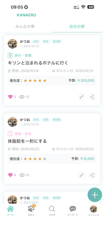 夢を登録して見える化した瞬間から、あなたの行動は“気合い”だけでなく“設計”に変わります。バージョンアップしたカナエルには、「夢が動き出す仕組み」があります。